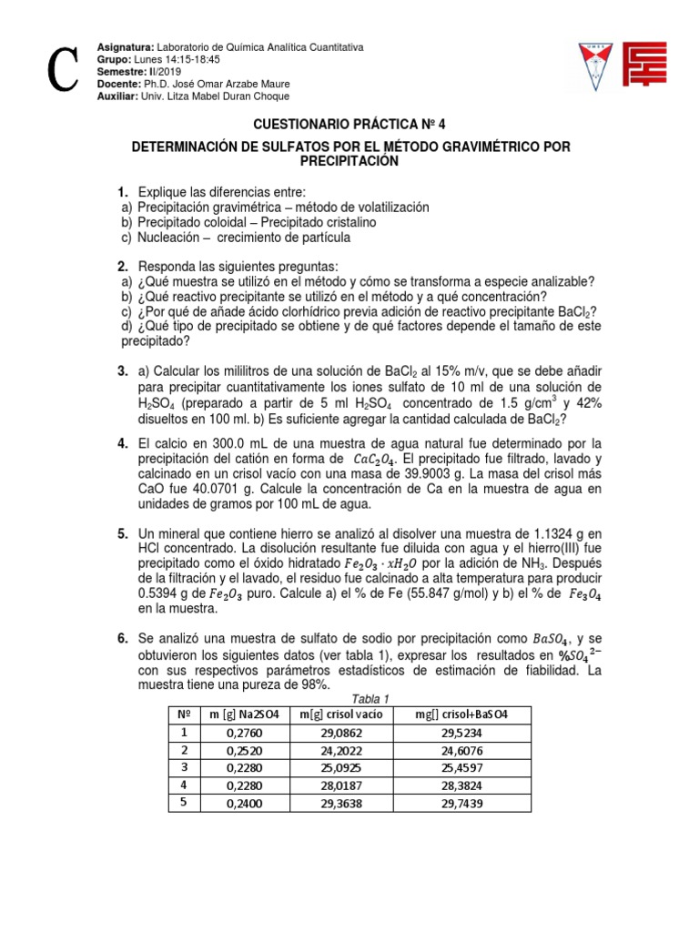 Cuestionario De Lab De Analitica Pdf Concentracion Acido Clorhidrico