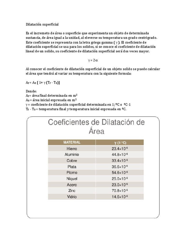 Coeficiente de dilatacion superficial. 7- Una chapa de acero tiene un area de 36 m 2 a 30 C. Después de aserrar la pieza por. Fórmula para calcular la dilatación superficial.