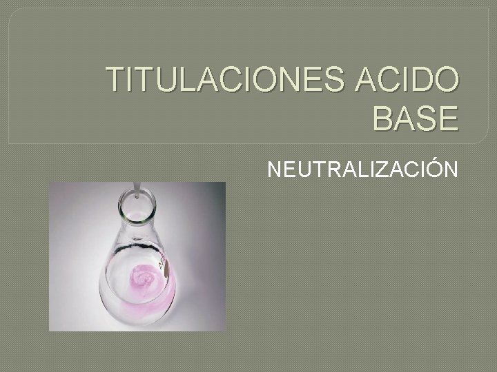 La titulación ácido base es un procedimiento frecuente en los laboratorio de análisis volumétrico. Lo que se busca es conocer la concentración y mediante esta la pureza de un analito. V ácido x N ácido V base x N base Esta ecuación es una expresión del principio de equivalencia.