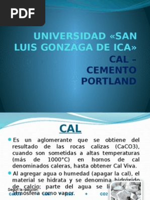 La cal tiene una reacción con el agua en la cual el hidróxido de calcio es el producto. La cal viva CaO también llamada óxido de calcio está disponible en diversos tamaños desde cal en pedazos o bolos hasta cal granulada o pulverizada. La piedra caliza es una roca sedimentaria natural y abundante que consiste en altos niveles de carbonato de calcio y o magnesio y o dolomita carbonato de calcio y magnesio junto con pequeñas cantidades de otros minerales.