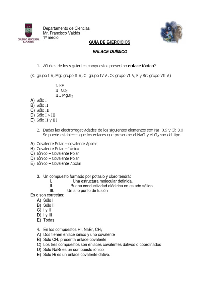 Guia Enlace Quimico Pdf Enlace Covalente Enlace Quimico