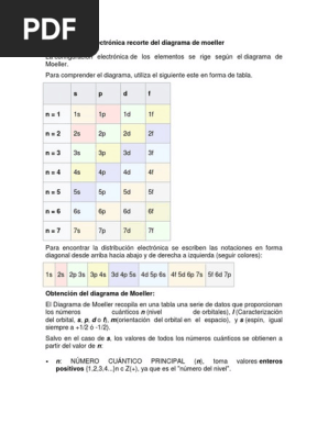 Se caracteriza por la construcción de una diagonal a lo largo de las columnas de la órbita y en la dirección de la flecha. ELECTRONICA CONFIGURA Antedents Era Niels Bohr un físico danés que ya ha aparecido como precursor de la actual Tabla periódica basada en su teoría de átomos que en 1923 ya ha indicado que las propiedades periódicas deben estar relacionadas con la. Diagrama de moeller pdf por.
