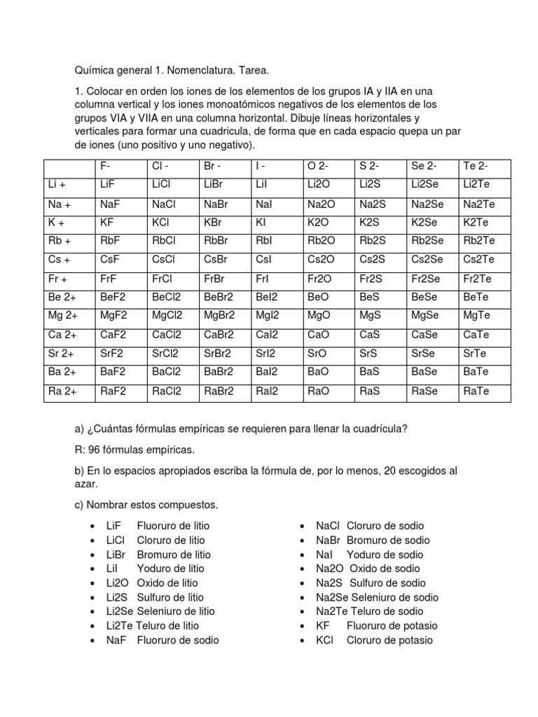 Quimica Formulacion Y Nomenclatura De Compuestos Inorganicos