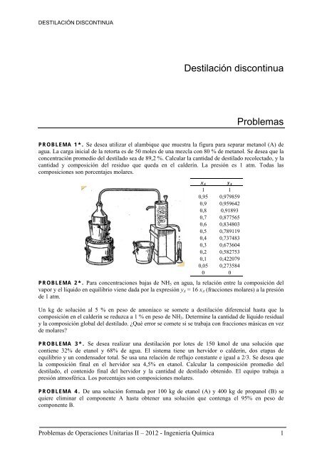 Se desea utilizar el alambique que muestra la figura para separar metanol A de. De esta manera me doy cuenta si la informacion que estoy proporcionando es de. PROBLEMAS DE DESTILACION DIFERENCIAL.