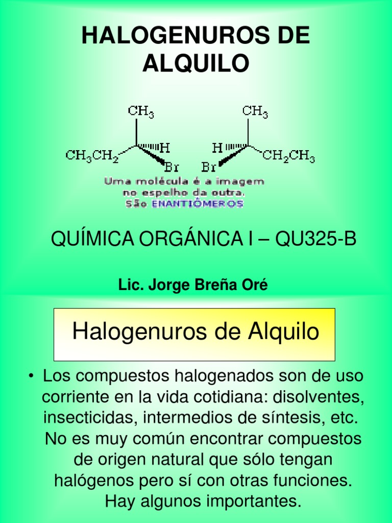 Los halogenuros de alquilo son compuestos orgánicos en los cuales un átomo de carbono con hibridación sp3 se enlaza covalentemente a un halógeno F Cl Br I. Desde otra perspectiva conviene para simplificar asumir que se tratan de haloalcanos.