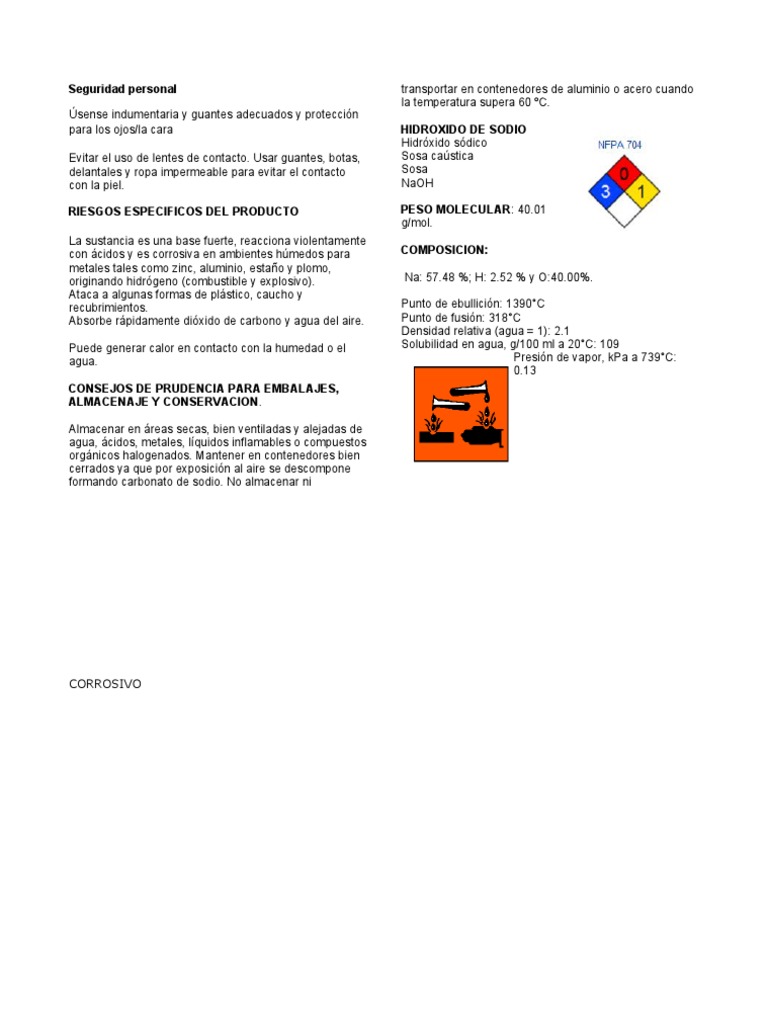 252 y O4000 GENERALIDADES. Peso molecular de NaOH Masa molar de NaOH 3999711 g mol Este compuesto también se conoce como hidróxido de sodio. La gran afinidad del Hidróxido de Sodio por el agua causa una reducción en la presión de vapor del agua y por tal razón es un muy buen agente secante 1.