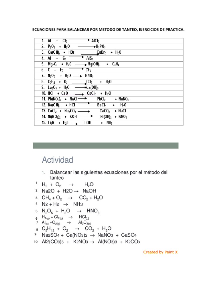 Ecuaciones Para Balancear Por Metodo De Tanteo Pdf