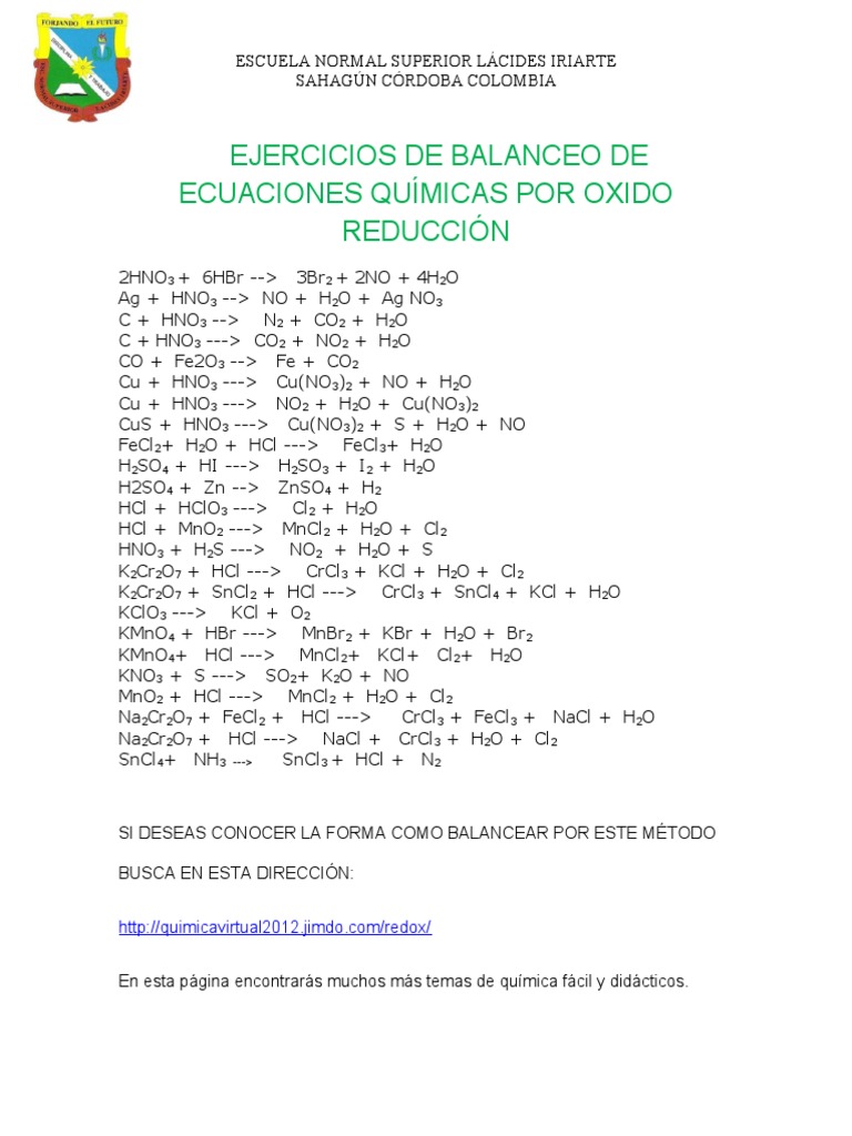 Ejercicios De Balanceo De Ecuaciones Quimicas Por Oxido Reduccion Pdf Naturaleza