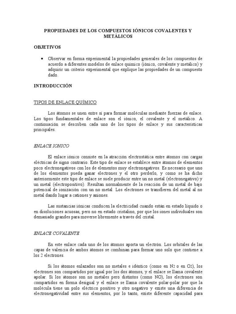 Propiedades De Los Compuestos Ionicos Covalentes Y Metalicos Pdf Enlace Quimico Rieles