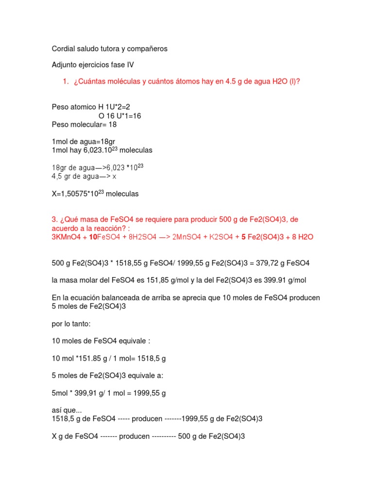 La Masa Molecular Del Compuesto Fe2 So 4 3 Es Hacer Procedimiento Brainly Lat