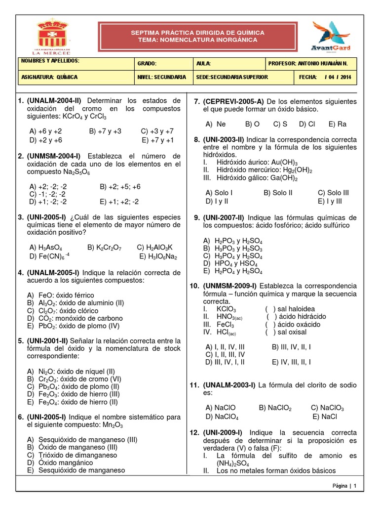 7prcticadirigidanomenclaturainorgnica 140416112754 Phpapp01 Pdf Compuestos Quimicos Sustancias Quimicas