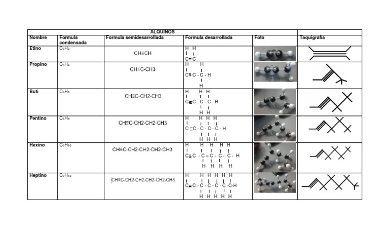 Los alquinos son hidrocarburos que contienen enlaces triples carbono-carbono. Cómo se llama el alquino de 3 carbonos. Alquinos Nombre Fórmula Condensada Fórmula Desarrollada Fórmula Semidesarrollada Imágenes Etino C2H H-CC-H HCCH Propino C3H4 H H H-CC-C-H H H HCC-CH2 Butin LinkedIn emplea cookies para mejorar la funcionalidad y el rendimiento de nuestro sitio web así como para ofrecer publicidad relevante.