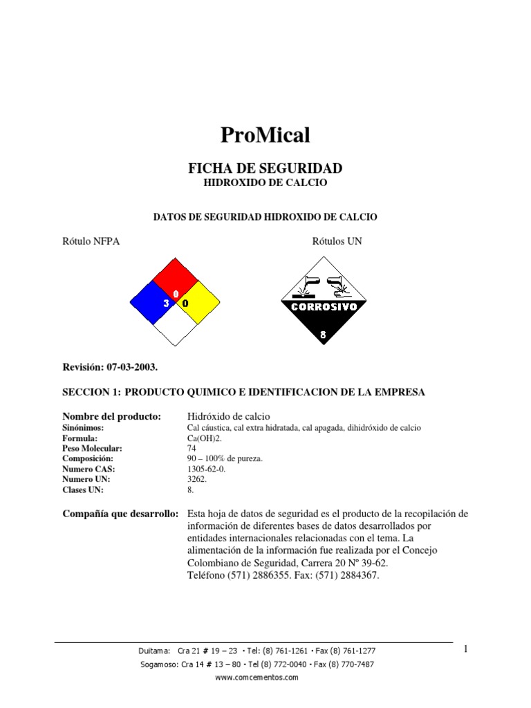 Msds Cal Hidratada Pdf Solubilidad Calcio